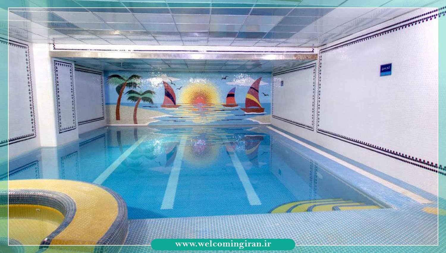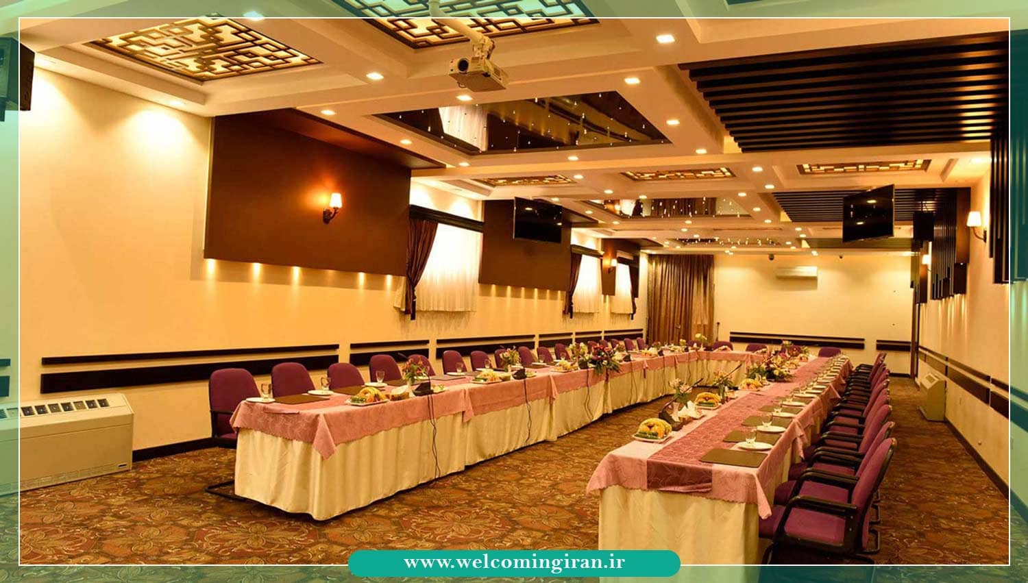 این هتل در 11 طبقه و دارای 92 باب اتاق 1تخته، 2 تخته است. از امکانات هتل می توان به سالن کنفرانس، سالن همایش، اتاق ماساژ (با هزینه)، خودپرداز، پارکینگ، رستوران گردان ایرانی، سالن اجتماعات، سونا، جکوزی، استخر، ویلچر، کرایه اتومبیل با راننده، کافی شاپ، صرافی، تالار پذیرایی و خدمات CIP (تشریفات ویژه) و... اشاره کرد.