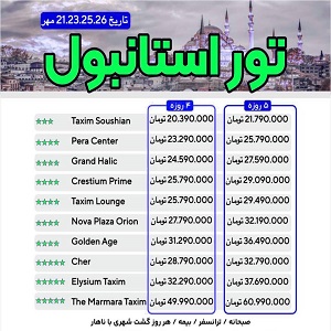 تور 4 و 5 روزه در تاریخ های 21، 23، 25 و 26 مهر